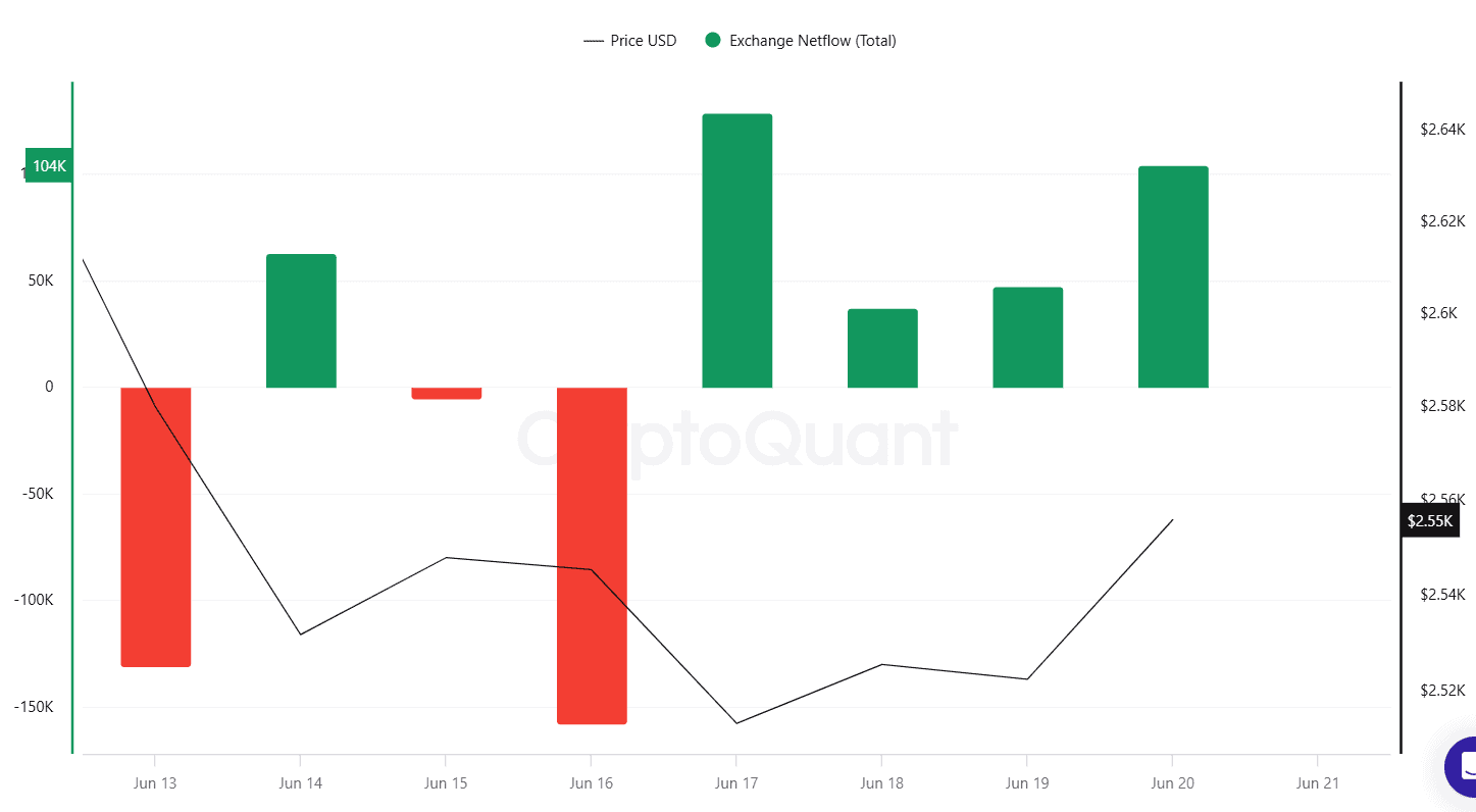 - Rising spot ETH ETF inflows reflect growing institutional interest and bullish momentum. However, recent positive exchange netflows hint at possible sell pressure ahead.